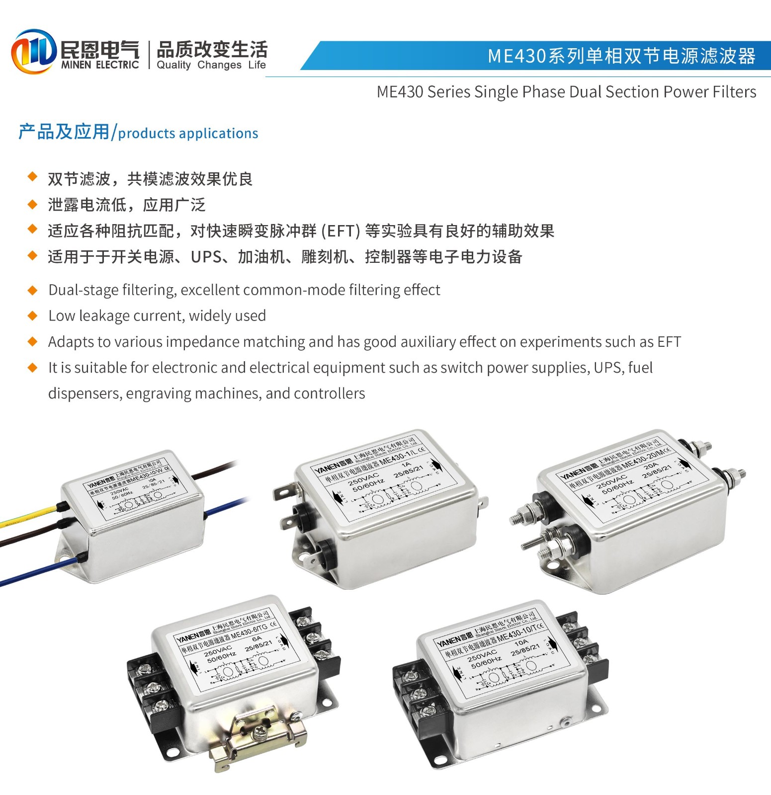 雙節(jié)濾波,共模濾波效果優(yōu)良,泄露電流低,應(yīng)用廣泛,適應(yīng)各種阻抗匹配,對快速瞬變脈沖群(EFT)等實(shí)驗(yàn)具有良好的輔助效果