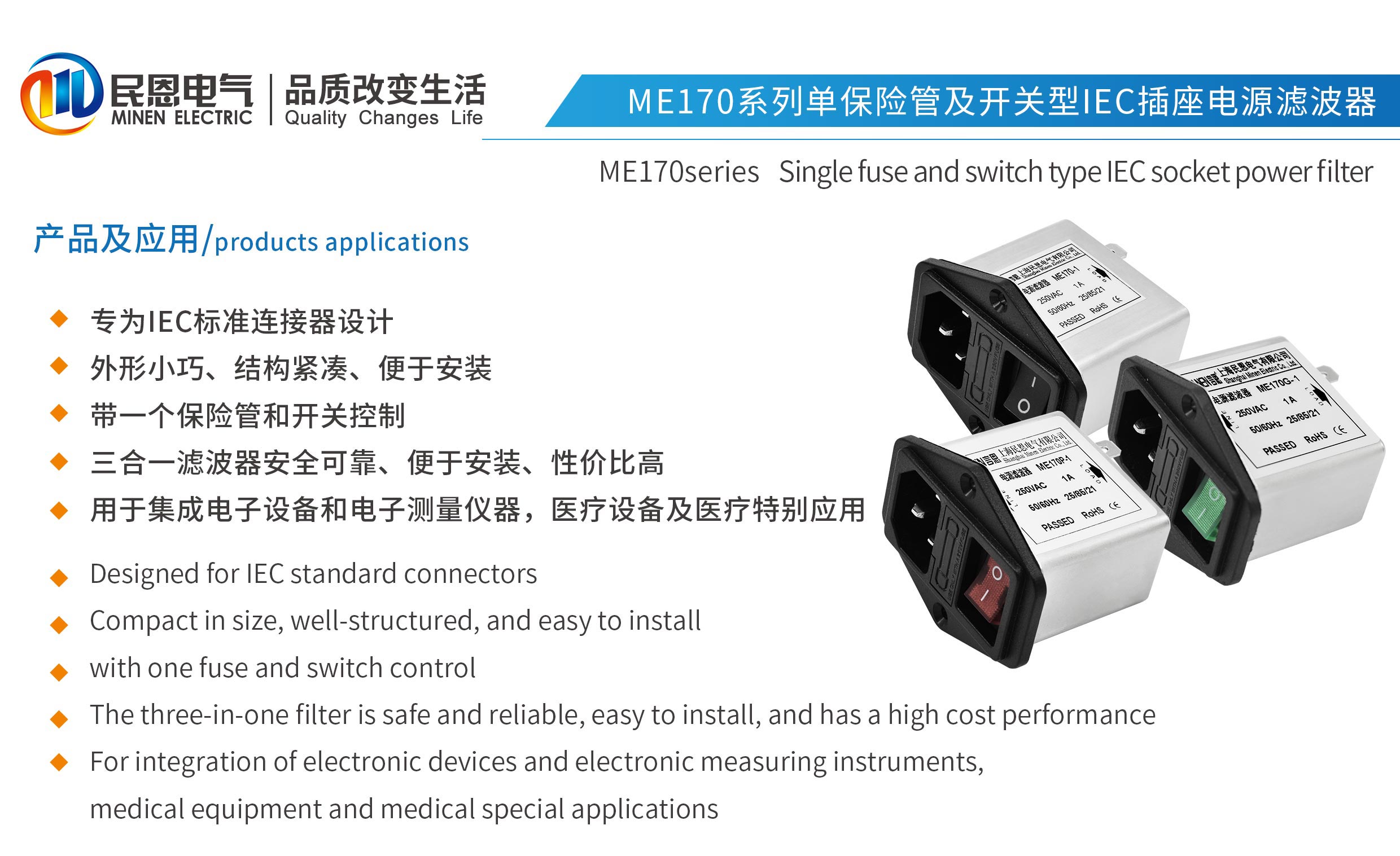 ME170系列單保險管及開關(guān)型IEC插座電源濾波器