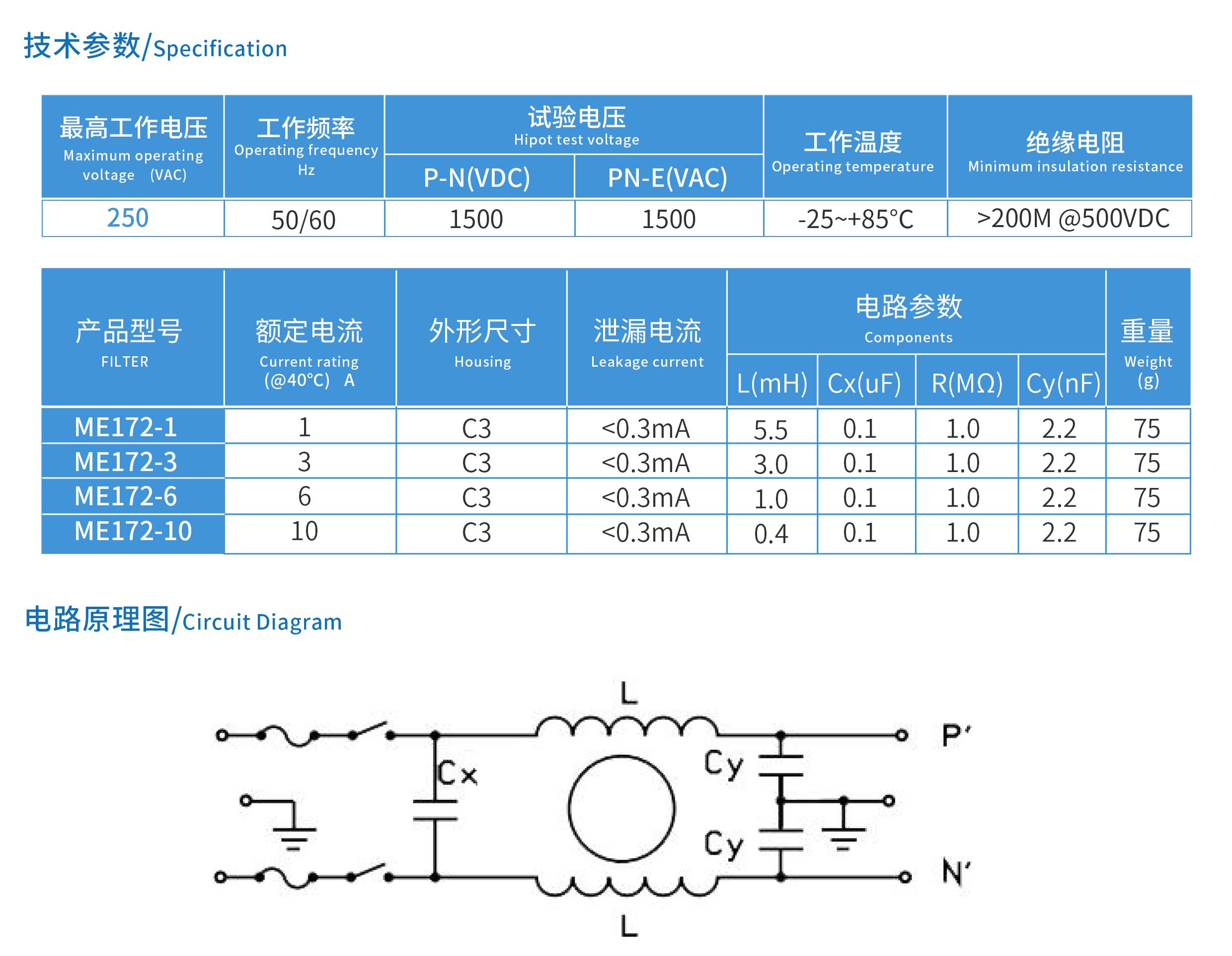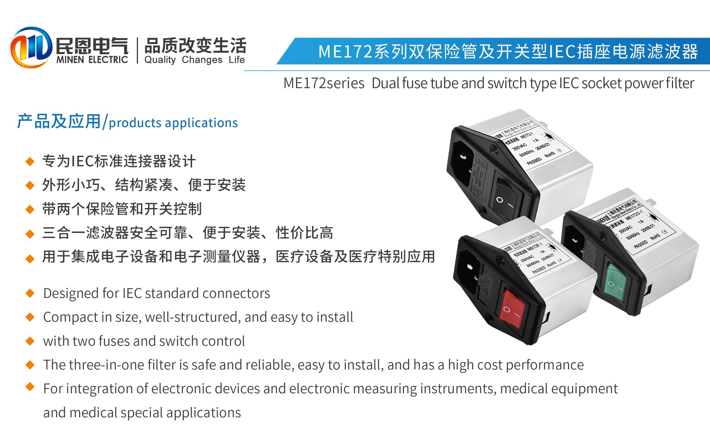 ME172系列雙保險管及開關型IEC插座電源濾波器
