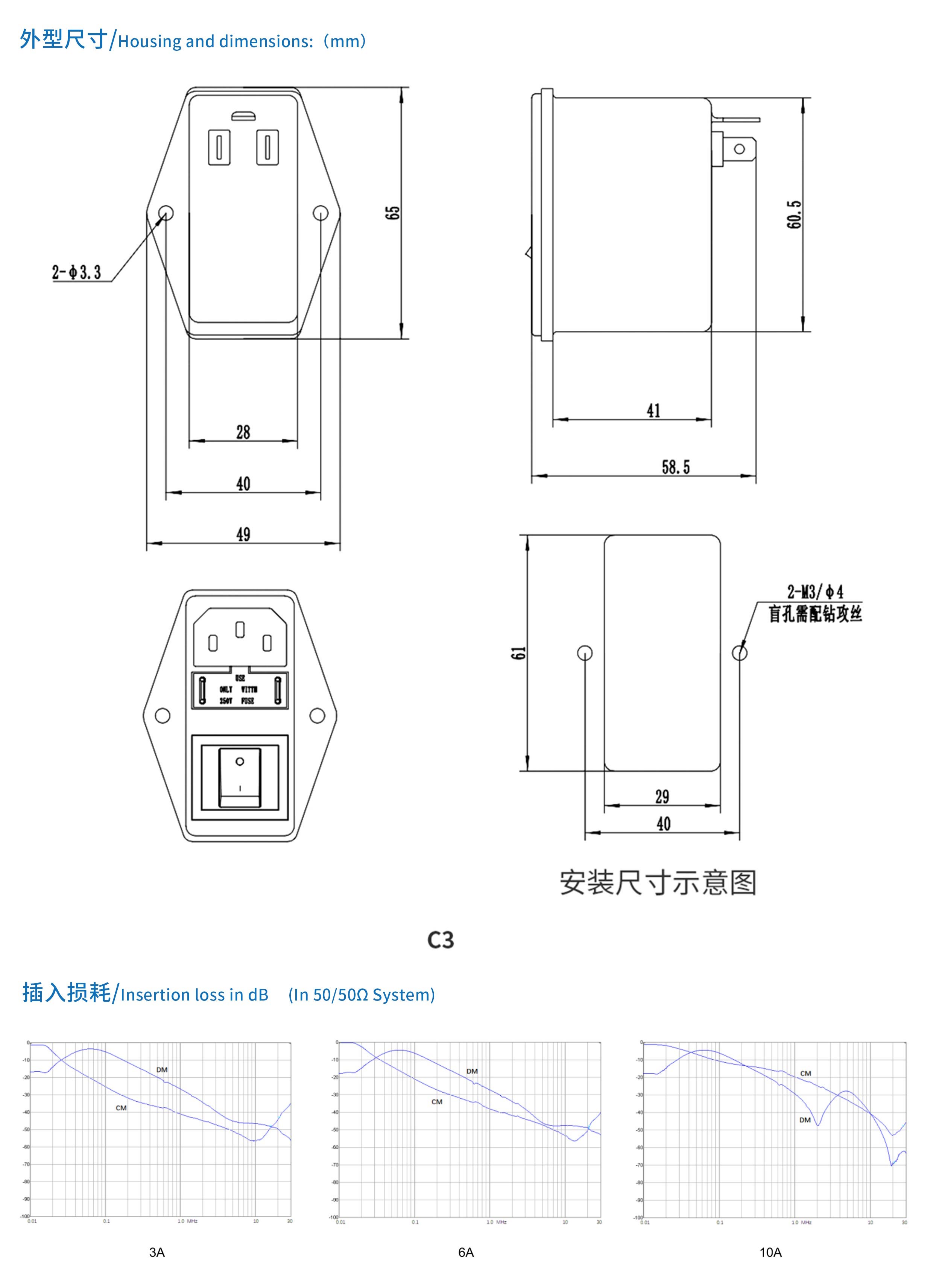 專為IEC標準連接器設計,帶兩個保險管和開關控制,外形小巧、結構緊湊、便于安裝,三合一濾波器安全可靠、便于安裝、性價比高