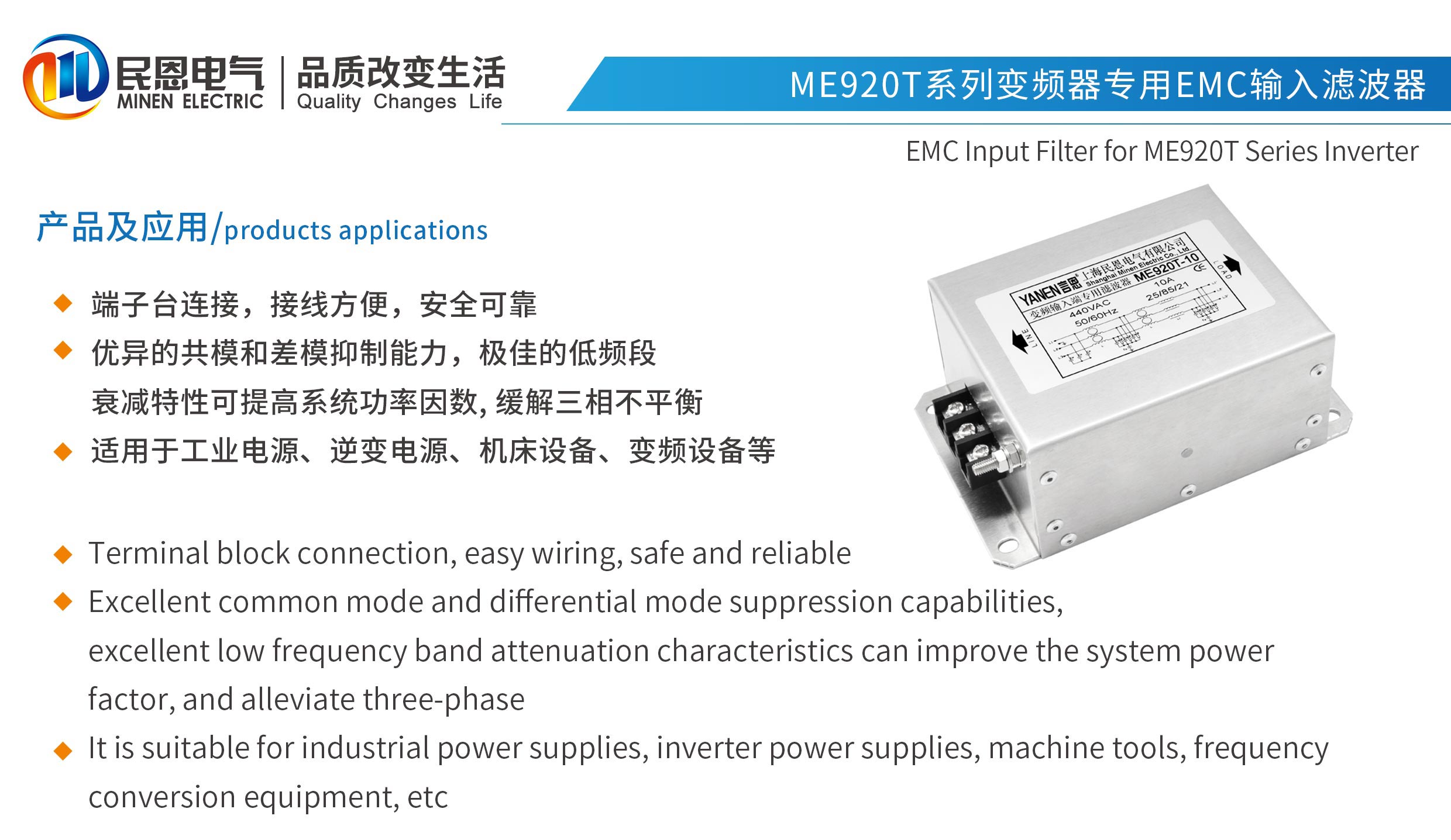 ME920T系列變頻器專用輸入EMC濾波器